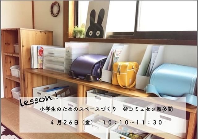 こんにちはコミュセンです今日は4/26開催の新生活にとっても便利整理収納Lessonのご紹介です・・ ・✼••┈┈••✼••┈┈••✼••┈┈••✼・・新入園・入学・進級をお迎えのみなさまおめでとうございます・ #整理収納アドバイザー ナミと申します。(Instagramアカウントは @nami_1001 です)・今週、入園入学を迎えられた方も多いのではないでしょうか?・わが家の末っ娘も小学校へ入学し、小学生3人、ランドセル3つとなりました・わたし自身も小学生の母となって5年目。整理収納アドバイザーとして3人の子どもを持つ母として・子どもたちと重ねてきたことそして日々がラクになったこと学校グッズの収納について、お片づけ育のこと、をまとめた、・#整理収納レッスン /『#小学生のためのスペースづくり 』を開催させていただきます️・●教科書やランドセルの置き場所●毎日の宿題、どこでする問題。●学習机は必要?●プリントの保管方法●収納グッズの選び方●子どもが自分で!予定管理●片づけない時どうする? など・子どもの年齢も、間取りも、家にある家具だって同じ家はひとつとないので、わが家流にアレンジできることがとっても大切!・ゴールではなく考え方をお伝えできたらと思います︎・基本的な考え方は同じなので#小学生ママ だけでなく、幼稚園や保育園#ママ も興味がありましたら♡picのように#ランドセル 2通園バッグ1の時の写真を中心にお話させていただきます️・お悩みもシェアできたら、わたしも含めママ同士でも発見があるかも?!と思っています。・・【小学生のためのスペースづくり】.・●4月26日(金) 10:10〜11:30 ●参加費 ¥1500小さなお子さま連れも大歓迎です^ ^・・お申込みは→ @nami_1001 のトップページからよろしくお願いします .(プロフィールページの“続きを見る”をタップしていただければURLがでてきます)・整理収納アドバイザー ナミ●整理収納アドバイザー1級●掲載誌 #ESSE サンキュ! CHANTO・・※メール受信しました時点での先着順とさせていただきます。※受付完了の旨をメールで返信致しますので受信できるように設定の程、よろしくお願いします。 ※万が一48時間以内に返信がない場合、こちらに届いていない可能性がありますのでお手数ですがもう一度ご連絡下さいm(_ _)m※やむを得ずキャンセルされる場合は24時間前までにご連絡くださいませ。(当日キャンセルは50%のキャンセル料が発生致します)・・・‧✧̣̥̇‧✦‧✧̣̥̇‧✦‧✧̣̥̇‧✦‧✧̣̥̇‧✦‧✧̣̥̇‧✧̣̥̇͡° ͜ ʖ ͡° ) what?コミュセン過去の投稿→@commucen‧✧̣̥̇‧✦‧✧̣̥̇‧✦‧✧̣̥̇‧✦‧✧̣̥̇‧✦‧✧̣̥̇‧✧̣̥̇・#コミュセン舞多聞 は#神戸市 #垂水区 の#舞多聞100年の杜 に地域の#コミュニティセンター としてOPENしました。#おしゃれ な街 #神戸 の新しいベッドタウン #舞多聞。#明石海峡 を臨む 木の温もり が心地いい #レンタルスペース です。・様々な イベント や 習い事 など様々な用途に、気軽に使って下さいね♬︎皆様の ライフスタイル がより彩りある豊かなものになりますように⋆。˚✩ 。・☆例えばこんな使い方…#クッキング教室 #お料理教室 #ダンス #リトミック #ヨガ #ストレッチ #ハンドメイド #パーティ #コーラス #楽器の練習 などなどその他、皆様の新しい#コミュセン の使い方、大募集です!・2月からは、#託児ルーム #もりのおうち in コミュセン も併設しています。「ちょっと習い事の間だけ…」「お買い物や美容院、病院に行きたい」「保育園や幼稚園へいく練習に」など、お気軽にご利用下さいね♪。.:*・♬*.*・゚お問い合わせはこちら.゚・*.【TEL】078-785-6613(コミュセン・託児所共用)【MAIL】Info@commucen.com(コミュセン)info@morinouchi.com(もりのおうち)