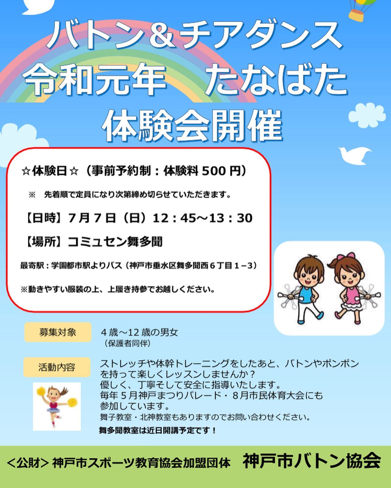こんにちはコミュセン舞多聞です7月7日#七夕 の日は、バトン&チアダンス体験会・・コミュセンでは初めてのコンテンツ️#バトン &#チアダンス なかなかご経験のある方いらっしゃらないのではないでしょうか??・チアダンスは映画でも題材に採り上げられた注目のコンテンツ是非一度、お子さまの習い事のひとつ...